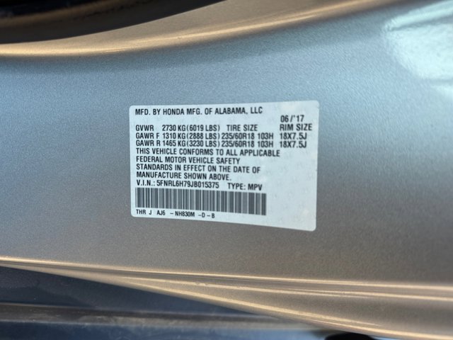 - VIN : 5FNRL6H79JB015375