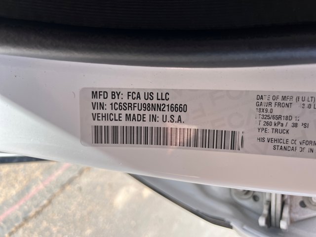 - VIN : 1C6SRFU98NN216660